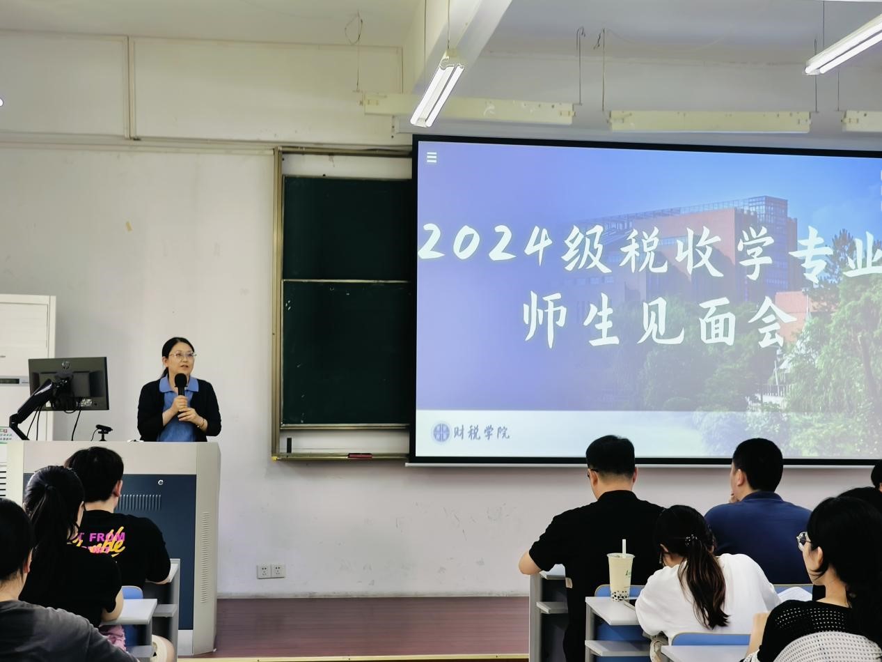2024年9月27日,yl永利集团官网登录在6教105举办了2024级税收学专业新生师生见面会,yl永利集团官网登录经理、税收学专业负责人刘颖老师, 24税收学各班班主任蔡丞老师、高伟华老师、孙文佳老师、24税收C1班辅导员杨凯强老师以及2024级税收学专业新生、班助代表等共计170余人参加本次活动。活动由24级税收学专业辅导员张渊老师主持,始学教育讲座部分由税务系主任朱计老师担任主讲人。