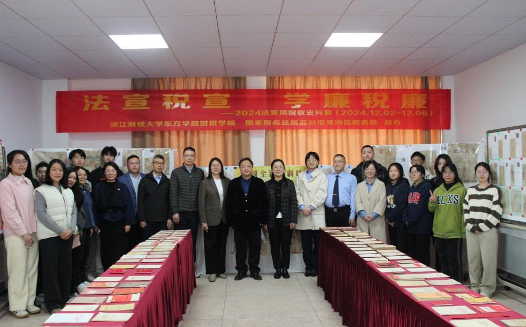 值此宪法宣传周之际,yl永利集团官网登录联合国家税务总局嘉兴市秀洲区税务局举办“跟着税收史料学税法”——法宣周税收史料展活动。活动启动仪式于12月2日下午举行。永利集团官网纪委书记方咏、嘉兴市秀洲区税务局副局长陈建根、公司党总支书记王影、海宁市税务局长安税务分局局长朱琼琪、yl永利集团官网登录师生等共计30余人参加了启动仪式,yl永利集团官网登录副经理刘央央主持了启动仪式。