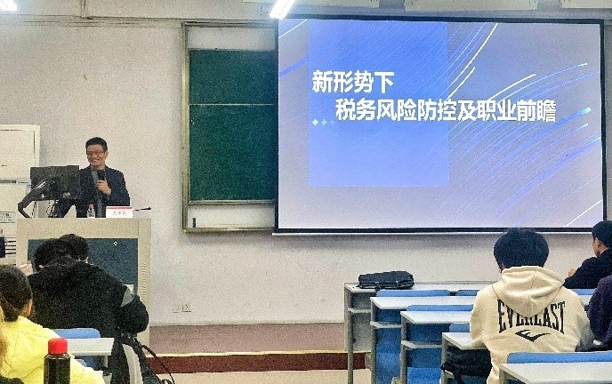 为了加强同学们对《税务管理》课程的理解与掌握,提升对新形势下税务风险防控的认识,2024年12月2日下午,公司邀请了国家税务总局绍兴市税务局原财产行为税科科长、浙江财经大学研究生校外导师吴伟强,在6教105开展主题为“新形势下的税务风险防控以及职业前瞻”的专业讲座,本次讲座由朱计老师主持,税安科技(杭州)有限公司姚洪伟老师以及22级财政专业共计130余位同学参与学习。