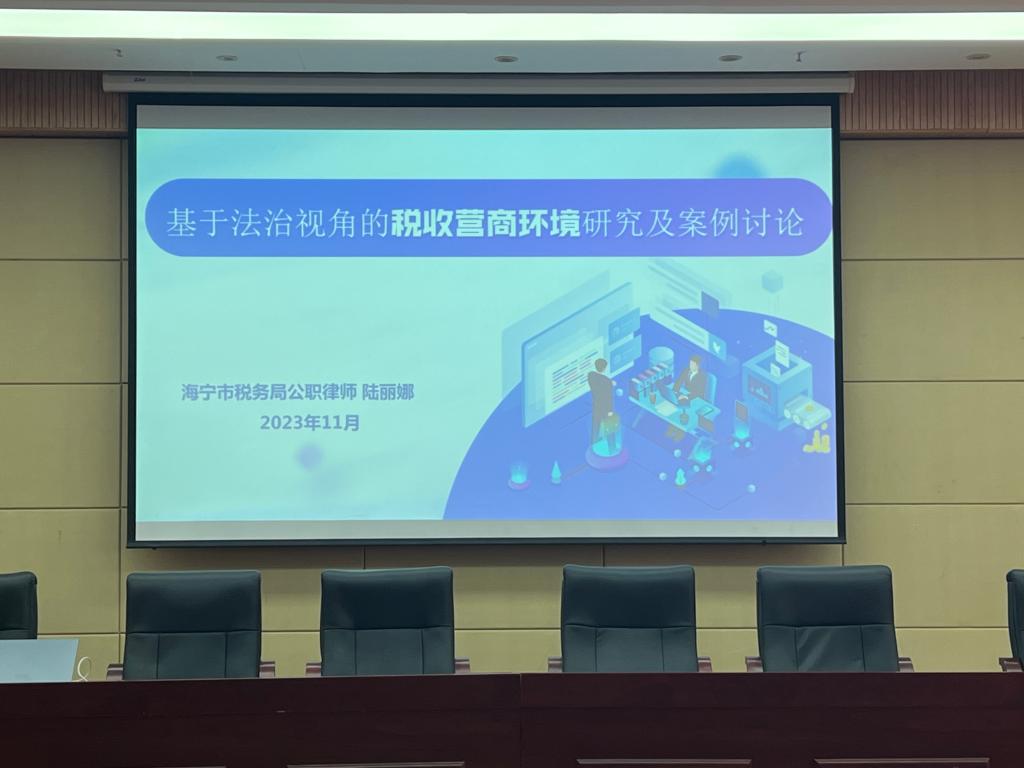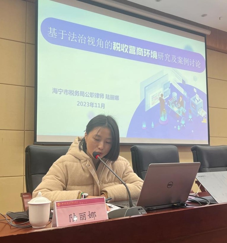 为加深员工对财税实务的认识,公司于2023年11月28日下午1点,邀请海宁市税务局陆丽娜律师在学术中心第二报告厅开展“基于法治视角的税收营商环境研究及案例讨论”的讲座。本次讲座主要面向本学期2、3、4学分《财政学》课程的员工。