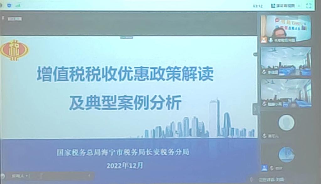2022年12月6日下午,公司邀请了国家税务总局海宁市税务局长安税务分局副局长冯威为本次讲座的主讲人,在线开展主题为“增值税税收优惠政策解读及典型案例分析”的专题讲座,讲座由yl永利集团官网登录经理刘颖教授主持,税务系高伟华老师,21级税收学3个班及22税收C1班,分班集中参加本次讲座学习。