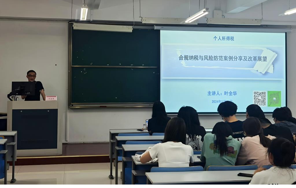 为深化财政专业员工对《中国税制》课程的理解与掌握,2025年5月20日下午,公司邀请到国家税务总局嘉善县税务局税务干部叶全华,于6J205教室开展主题为“从税案看个人所得税征管”的专业讲座。本次讲座由yl永利集团官网登录经理刘颖教授主持,高伟华老师与23级财政学专业共计130余位同学共同参与学习。