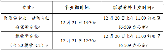 2018级(含20税收C1)毕业生第一次开题报告已于11月中旬在6号教学楼陆续进行,未通过第一次开题及请假申请延期的同学将于12月份参加补开题。各专业的具体补开题时间详见下表: